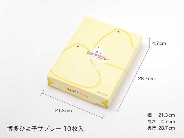 大雪のため、お届け時に遅延が発生する可能性がございます。(ヤマト運輸のページへ) 【紅白ひよ子】ご卒園・ご卒業、節目のお祝いに選ばれています! ホーム通常商品 博多ひよ子サブレー 博多ひよ子サブレー 10枚入 価格: ¥1,210 (本体 ¥1,121) [ポイント還元 12ポイント~] 販売期間: 外のし・内のし・短冊のし: ■必須■※短冊の場合、水引はございません。 選択してください のし無し 外のし 内のし 短冊のし 種類(表書き): ■必須■選択肢にご希望の表書きがない場合は、「その他」をお選びいただき、ご購入ページ内の「通信欄」にご記入ください。 選択してください のし無し (01)祝 ご入学-蝶結び (02)祝 ご入園-蝶結び (03)祝 御卒業-蝶結び (04)祝 御卒園-蝶結び (05)御中元-蝶結び (06)暑中御見舞-蝶結び (07)残暑御見舞-蝶結び (08)祝 敬老-蝶結び (09)御祝-結び切り (10)御祝-蝶結び (11)御歳暮-蝶結び (12)御年賀-蝶結び (13)お年玉-蝶結び (14)寒中御見舞-蝶結び (15)快気祝-結び切り (16)寿-蝶結び(長寿のお祝い等) (17)寿-結び切り (18)寸志-蝶結び (19)御見舞-結び切り (20)御挨拶-蝶結び (21)粗品-蝶結び (22)内祝-蝶結び(出産内祝) (23)内祝-結び切り(結婚内祝) (23-2)快気内祝-結び切り (24)御礼-蝶結び 紅白 素のし(蝶結び) 紅白 素のし(結び切り) ----- (25)御霊前-結び切り (27)御供-結び切り (26)御仏前-結び切り (28)粗供養-結び切り (29)志-結び切り 仏 素のし(結び切り) その他 名入れ: のしに記載するお名前(贈り主様のお名前) 数量: 個 在庫 ○ 返品についての詳細はこちら のしガイドを見る 賞味期限 製造日より39日間 保存方法 常温 アレルギー 小麦、乳、卵 原材料表示 小麦粉(国内製造)、砂糖、バター、液卵、蜂蜜/膨張剤、(一部に小麦・卵・乳成分を含む) 10,800円以上(税込)で全国一律送料無料。※冷凍・冷蔵商品は除く 博多ひよ子サブレー 6枚入手提箱 ¥756(本体 ¥700) 博多ひよ子サブレー 8枚入 ¥972(本体 ¥900) 博多ひよ子サブレー 14枚入 ¥1,685(本体 ¥1,561) 博多ひよ子サブレー 18枚入 ¥2,160(本体 ¥2,000) 博多ひよ子サブレー 24枚入 ¥2,852(本体 ¥2,641) ひよ子メープルサブレー 5枚入 ¥621(本体 ¥575) ひよ子メープルサブレー 10枚入 ¥1,156(本体 ¥1,071) 銘菓詰合せ AHS ¥1,426(本体 ¥1,321) 銘菓詰合せ KHS ¥2,139(本体 ¥1,981) 銘菓詰合せ EHS ¥2,852(本体 ¥2,641)